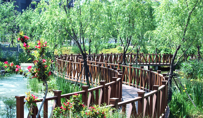 青林灣公園最大的特色就是擁有很多傳統(tǒng)江南水景,馬家河橫貫公園,西邊緊挨著黃家河,再往北眺就是姚江。園內(nèi)的每處景觀,幾乎與水相依,主體結(jié)構(gòu)更是以水為帶,蜿蜒而來。
